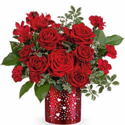 Price: $90.00Classic Love Red Rose Bouquet with Luxe Swirl Vase